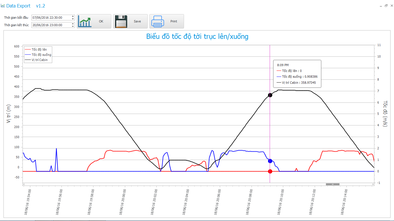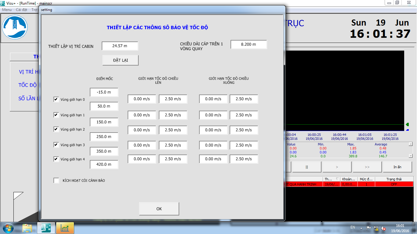 - Cho phép truy xuất thông tin về tốc độ làm việc của tời tại mọi thời điểm trong quá khứ.
